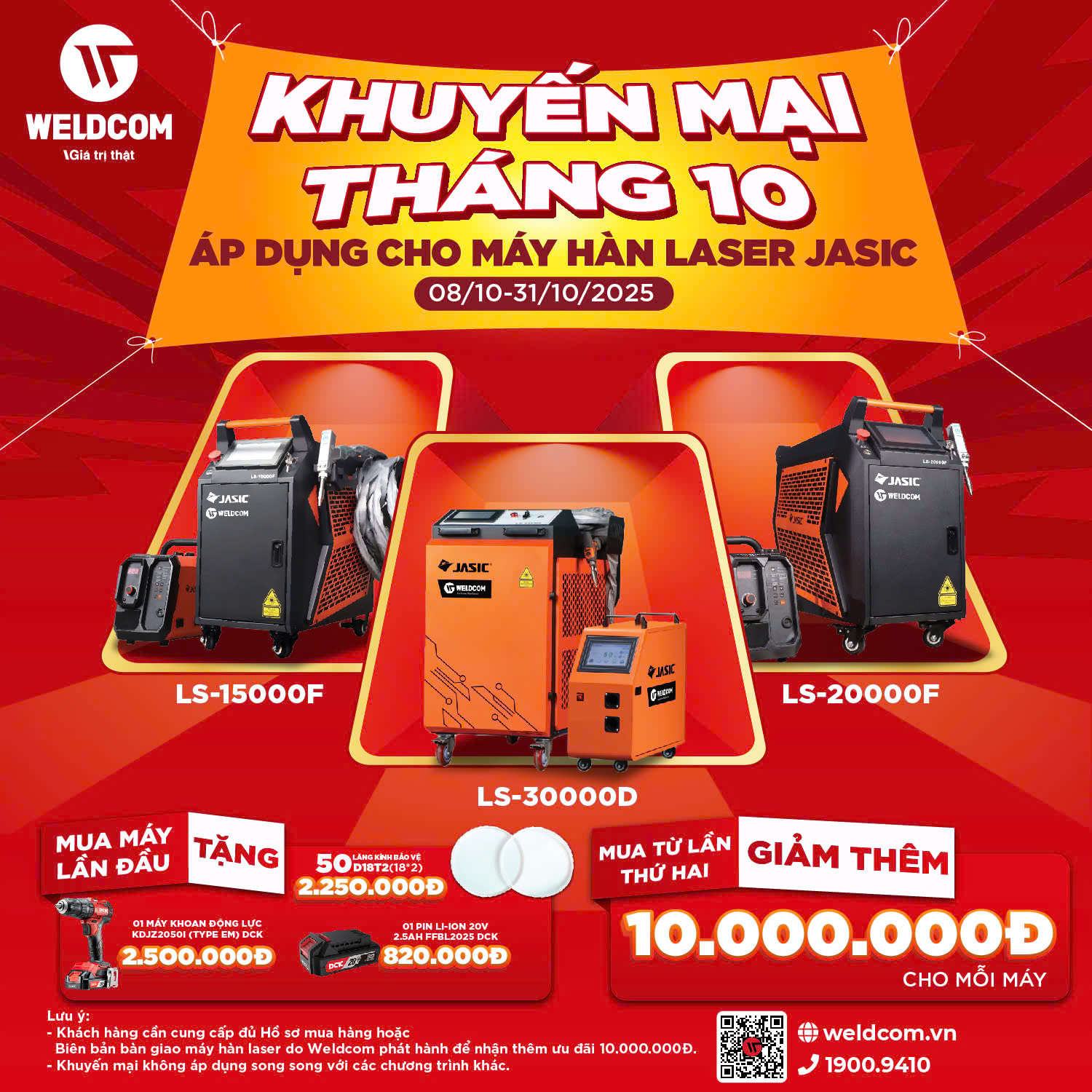 👥 Đối tượng: Tất cả khách hàng mua máy hàn laser JASIC chính hãng do Weldcom phân phối trên toàn quốc.