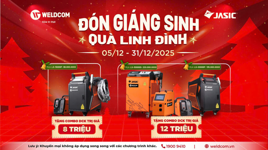 Tháng 12 khởi động mùa lễ hội rộn ràng, Weldcom mang đến chương trình khuyến mại đặc biệt dành cho khách hàng lựa chọn các dòng máy hàn laser JASIC. Đây là dịp vàng để các xưởng gia công đầu tư thiết bị công nghệ cao với chi phí tối ưu, đồng thời nhận thêm nhiều phần quà giá trị từ thương hiệu dụng cụ điện DCK do Weldcom phân phối chính hãng.